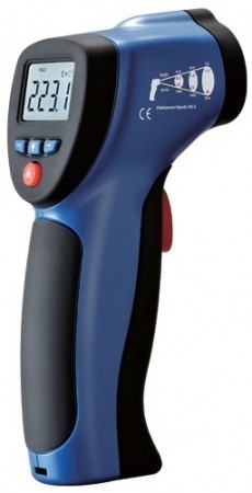 Пирометр DT-882 дистанционный измеритель температуры, одним нажатием кнопки позволяет бесконтактным (ИК) способом измерять температуру. Бесконтактные инфракрасные термометры могут использоваться для измерения температуры поверхности объектов, которую невозможно измерить традиционным (контактным) термометром (например: движущиеся или труднодоступные объекты, поверхности объектов находящихся под напряжением).